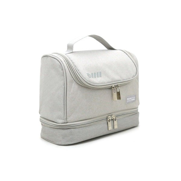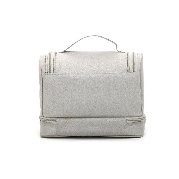 Apertura con cierre. - Dos compartimentos (con red en parte inferior, 1 bolsillo interno). - Un compartimento de 22 x 17 cm. - Un compartimento interno con cierre y red. - Un compartimiento impermeable (parte inferior). - Tira exterior, para llevar en la mano o colgar. - Excelente terminación y colores. - Ideal para viajes. - Se puede usar en el hogar para organizarte mejor. - Medidas: 24 cm x 19 cm x 13 cm. - Material: 70% Poliéster 30% PU.