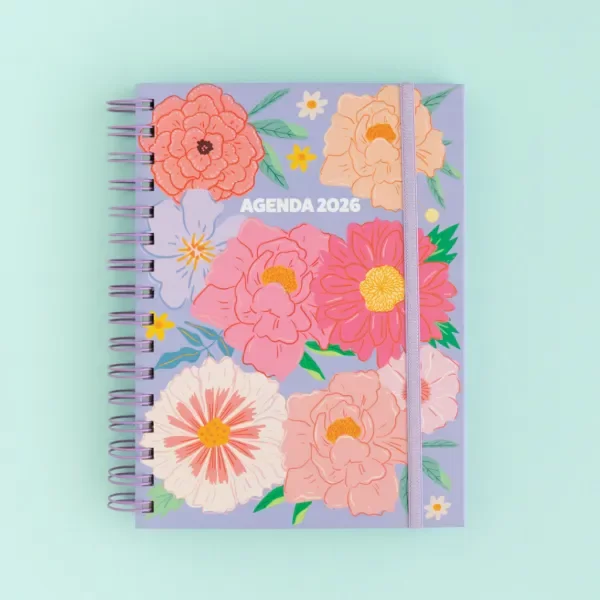 Es semana a la vista, tamaño A5, con tapa dura y elástico a tono. Encuadernación en espiral. Agenda de 100 hojas, impresa en papel obra de 80gr. El interior es el mismo en todas las agendas.