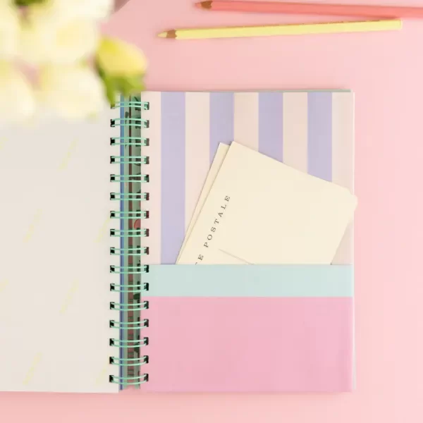 Es semana a la vista, tamaño A5, con tapa dura y elástico a tono. Encuadernación en espiral. Agenda de 100 hojas, impresa en papel obra de 80gr. El interior es el mismo en todas las agendas.