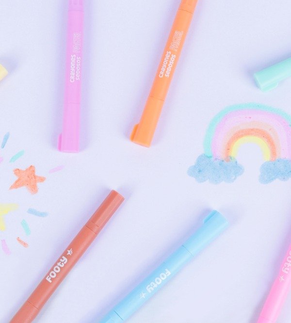 crayones sedosos en tonos pastel.