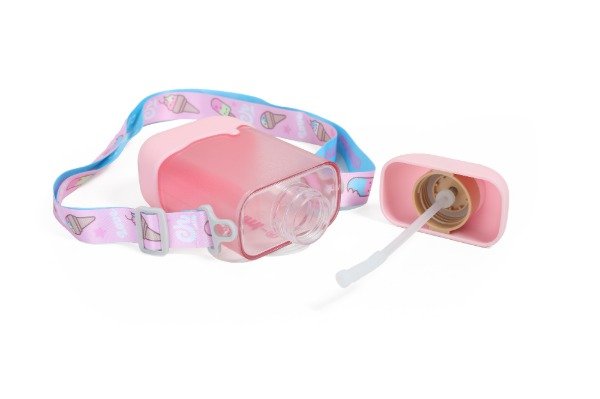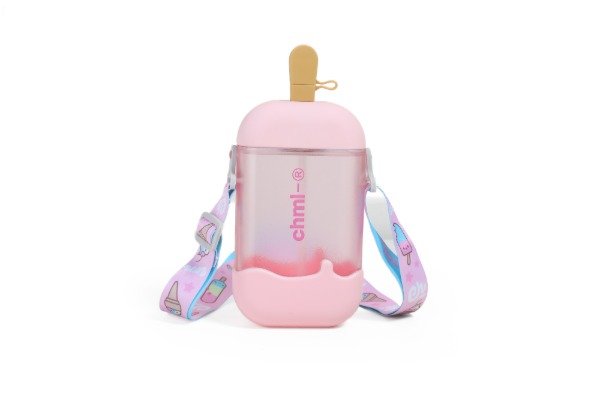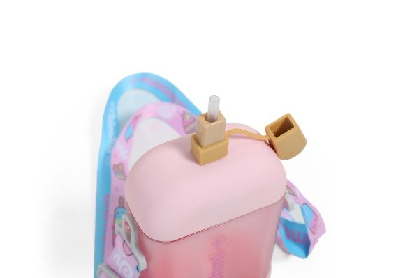 Descripción: Botella infantil con stickers 3D, stickers impresos y correa regulable. Material: plástico PP + AS, libre de BPA. Tapa con sorbete integrado y manija superior. Incluye correa ajustable con diseño estampado. Decoración frontal con apliques 3D y stickers impresos. Diseño ergonómico. Apta para bebidas frías o a temperatura ambiente (no calientes). No apta para microondas ni lavavajillas.