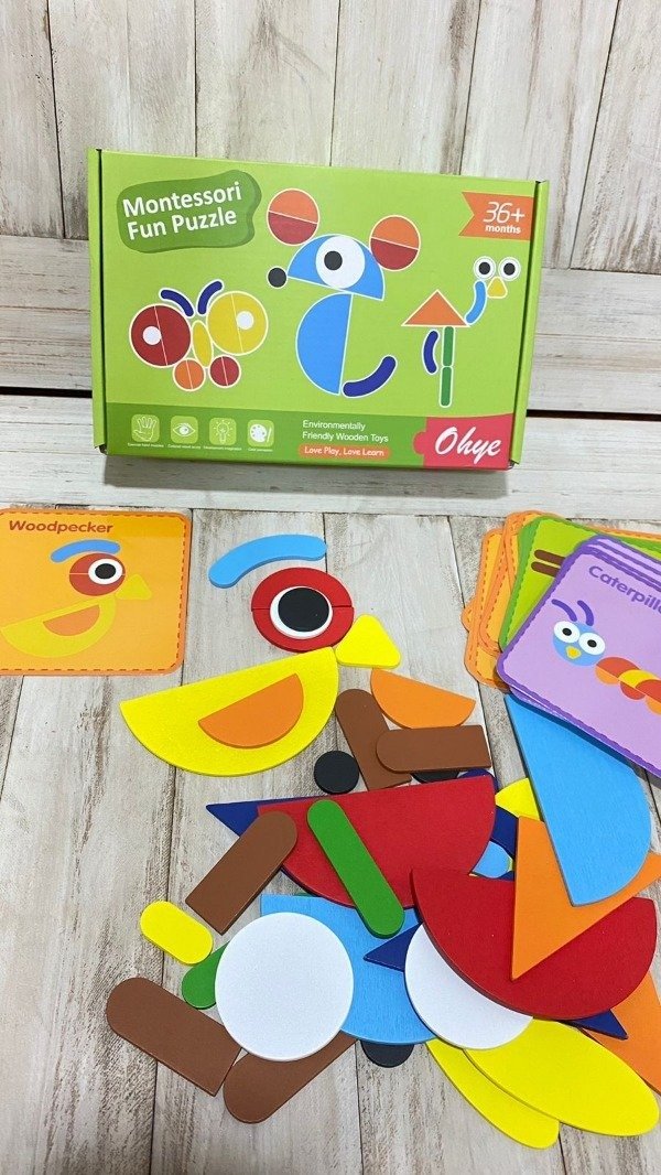 Es un gran juego para chicos a partir de los 3 años. Plantea el desafío de armar figuras con las fichas de diferentes formas, colores y tamaños siguiendo las imágenes de las tarjetas. A su vez se puede crear todo lo que ellos imaginen. Las tarjetas tienen formas con diferente nivel de complejidad.